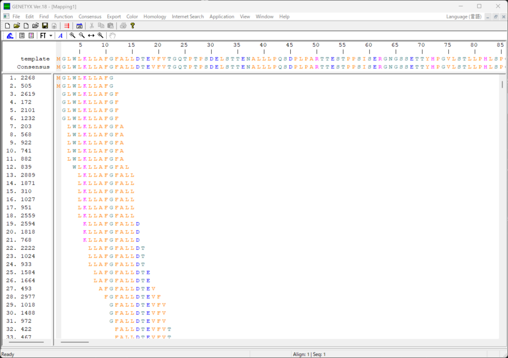 遺伝情報処理ソフトウェア GENETYX Ver.18 は、多彩な機能、見やすい画面、直感的に操作が可能な総合遺伝子解析ソフトウェアです。核酸・アミノ酸配列入力編集、核酸・アミノ酸配列解析、インターネット検索支援、プラスミドマップ、シーケンスアセンブラー、次世代シーケンス解析機能、配列データベース等多岐にわたる解析内容をご利用いただけます。